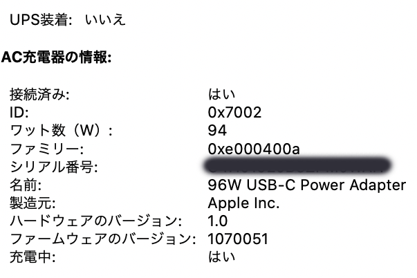 上記の条件で、満充電のMacBook Proの充電残量を7%まで減らしました。その際、内蔵バッテリーが7%まで減るのに約2時間使用できました。