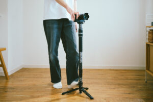 さらに、三脚ではどうしても面倒な「脚を伸ばす・畳む」という動作が、一脚では一瞬で完了するので、動画撮影のワンオペではもちろん、ポートレートや商品撮影など、スチールでもこまめに高さを変えたい場面で非常に便利です。